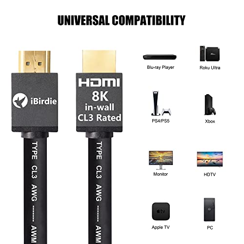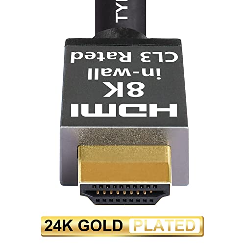 8K HDMI 2.1 cable 12ft, wall CL3 rated,8K/60hz 4K/120hz HDCP 2.3/2.2 eARC/ARC Ultra High speed 48Gbps compatible with Apple TV PS5/PS4, Xbox SX, RTX 3080/3090